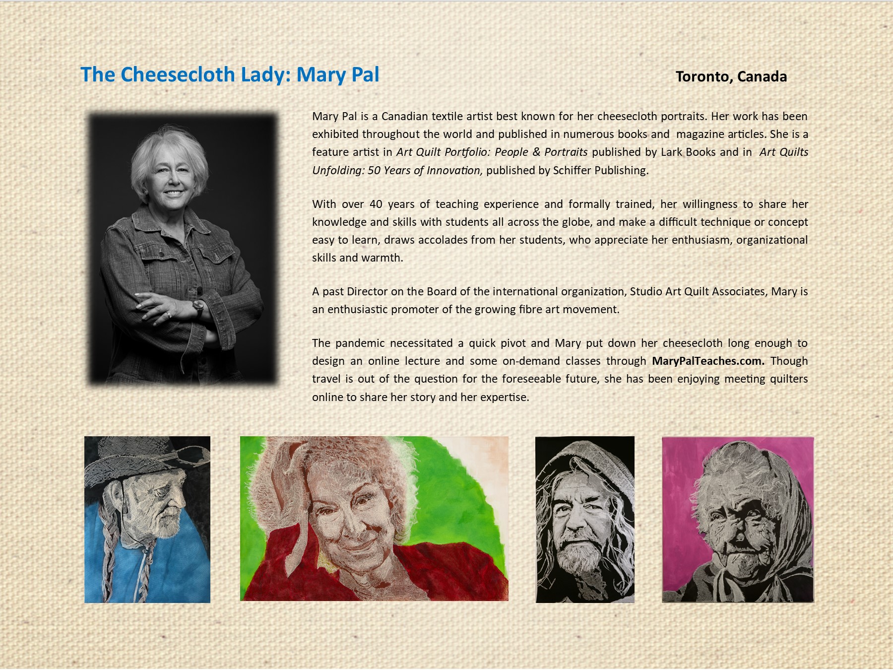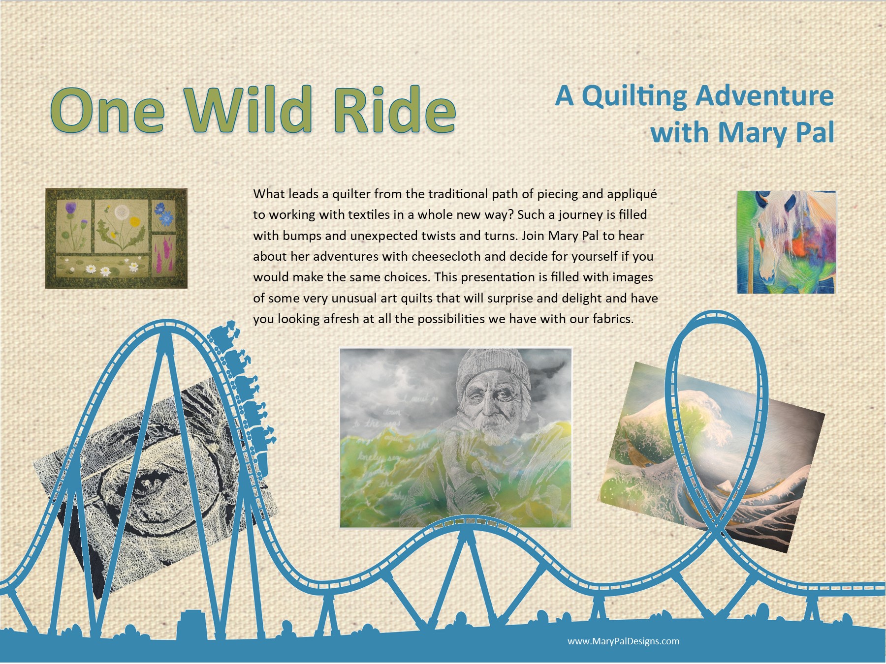 Guilds and arts groups regularly inquire about my lecture, "One Wild Ride," the whole cheesecloth story. It answers the perennial question: "How the heck did you come up with this?!" and shows the wild ride of my discovery.